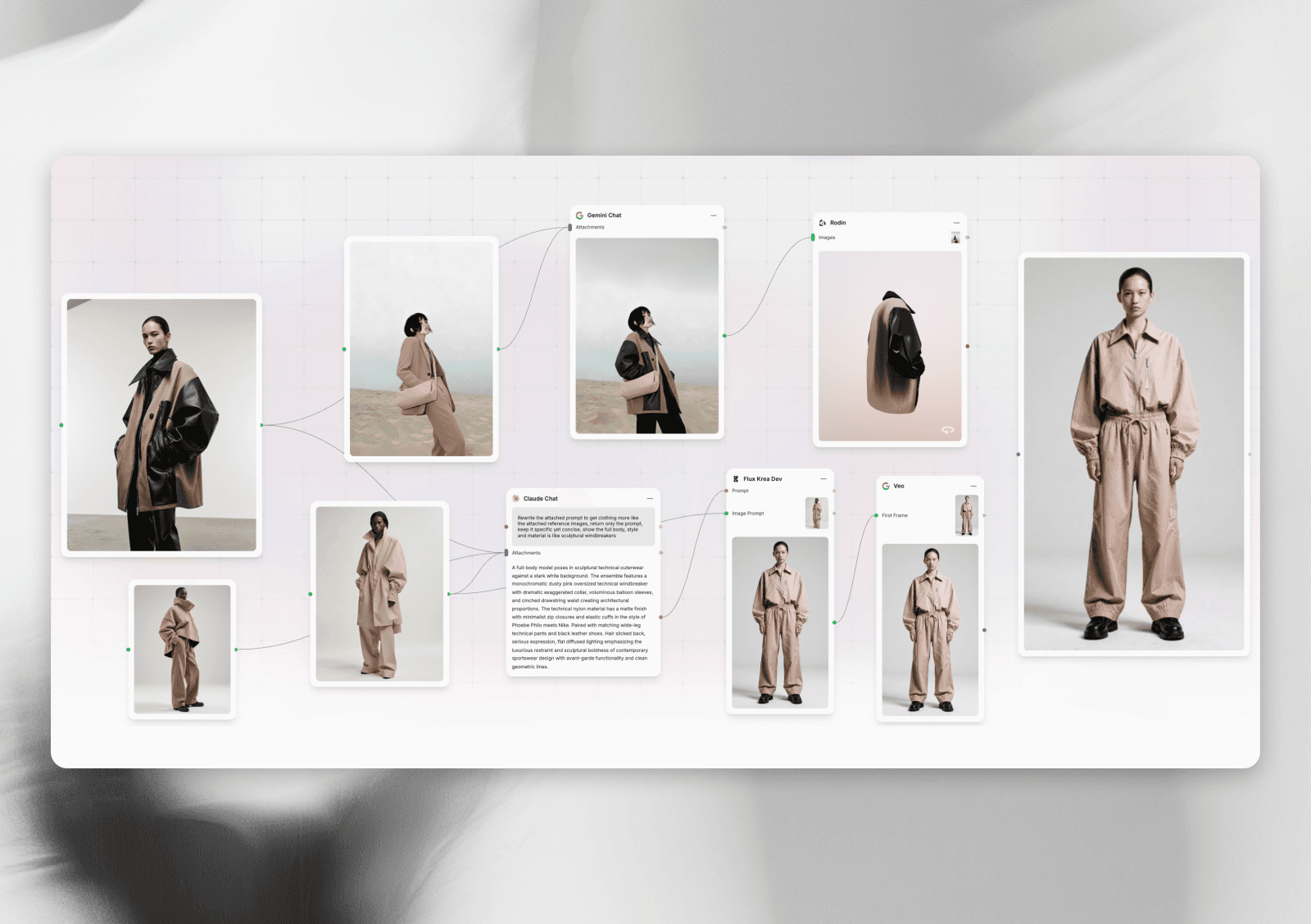 b. Fuser: Fuser is an AI canvas that gives designers access to 200+ AI models across all formats (text, image, video, audio, 3D) in one workspace. It accelerates the entire design process from rough sketches to finished outputs through pre-built workflows and multi-model iteration.