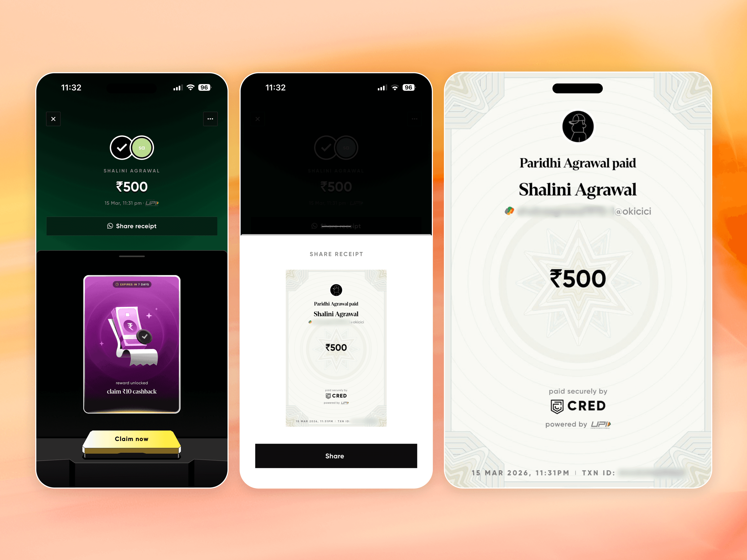 When users make a payment via CRED, they can share the receipt to the payee for confirmation.