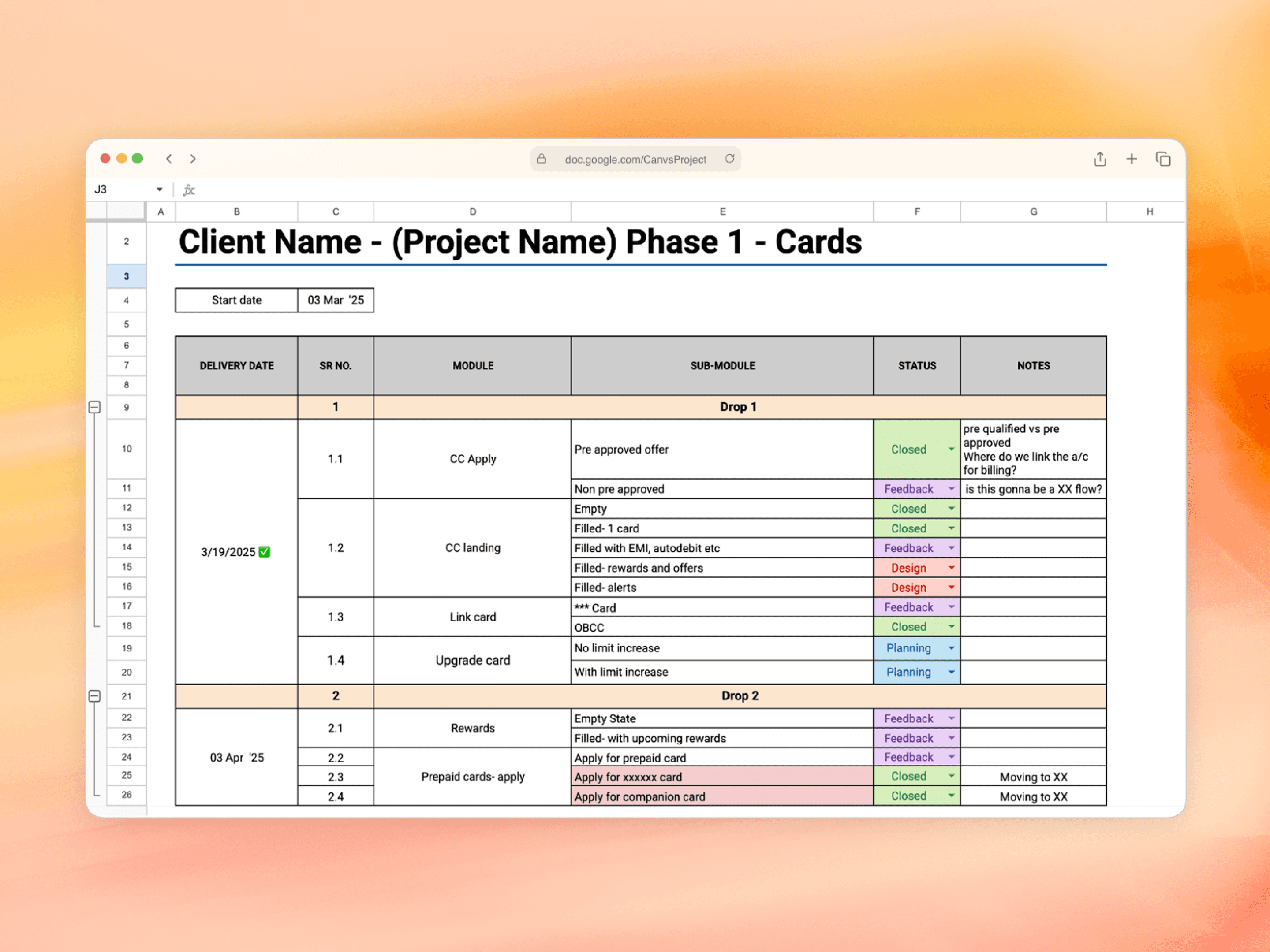 Client-facing trackers help DMs stage where different deliverables are in the pipeline, what inputs have been received, which ones are pending, and where perhaps information overlaps can help individual client teams maintain coherence over an enterprise or legacy product with multiple sub-units.