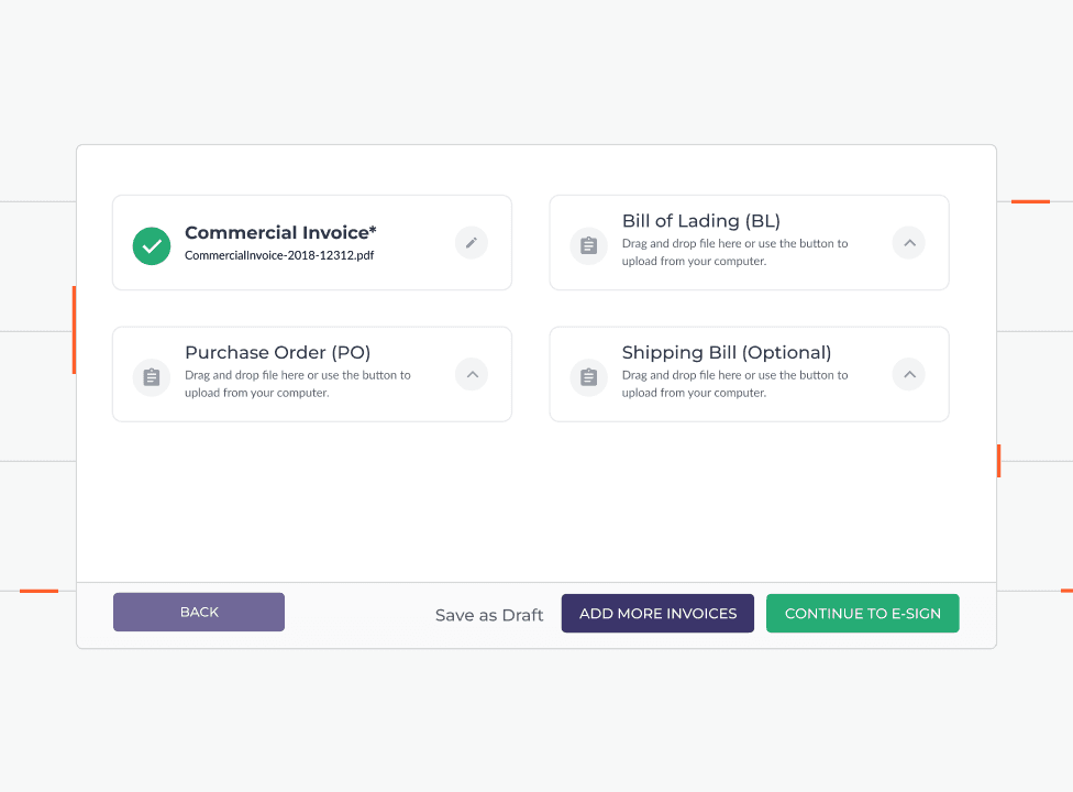 Invoices are raised by Clients (businesses) to Drip for their individual shipments against their individual buyers. These invoices allow Clients to receive the advance amount that Drip as a business promises based on various checks and verifications that Drip does at their end around the Client and for the shipment.