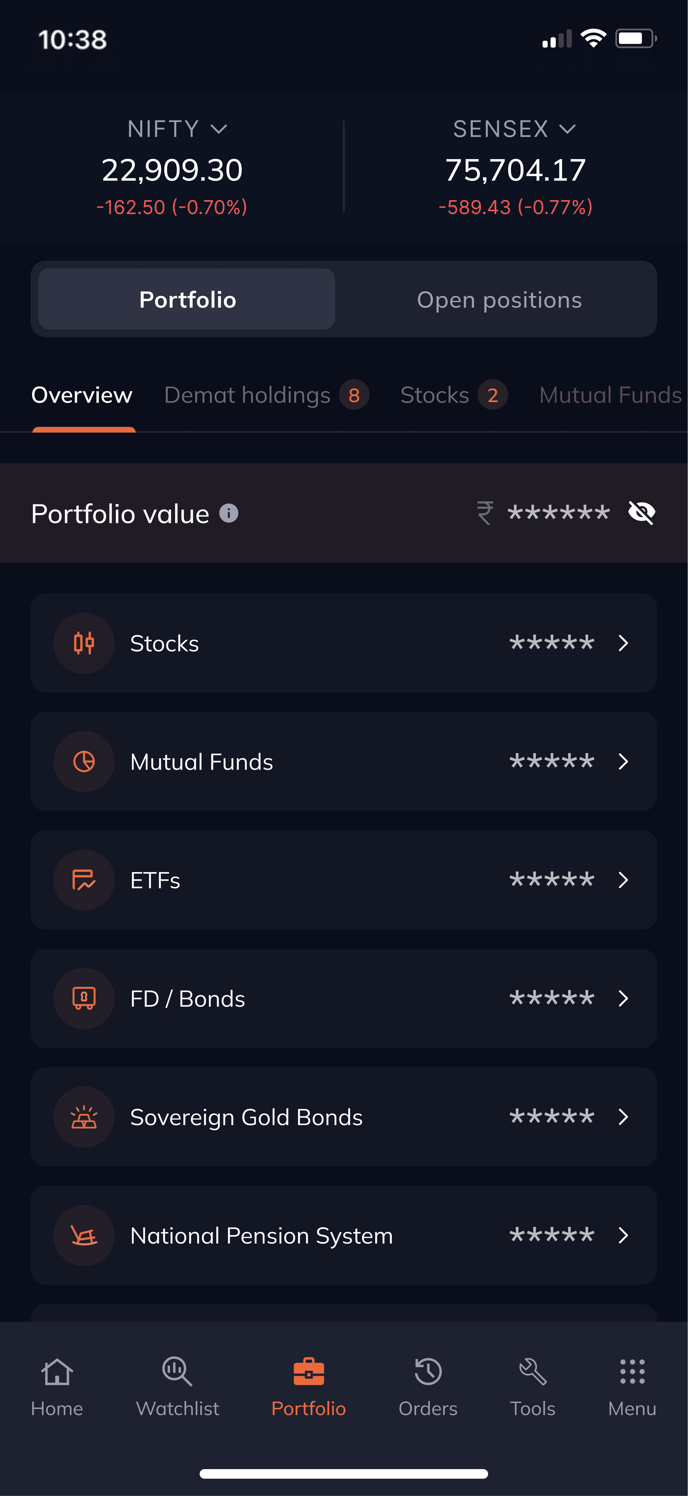The updated portfolio section features all of the user's investments in one place, while providing recommendations into the other instrument types they could have in their portfolio.