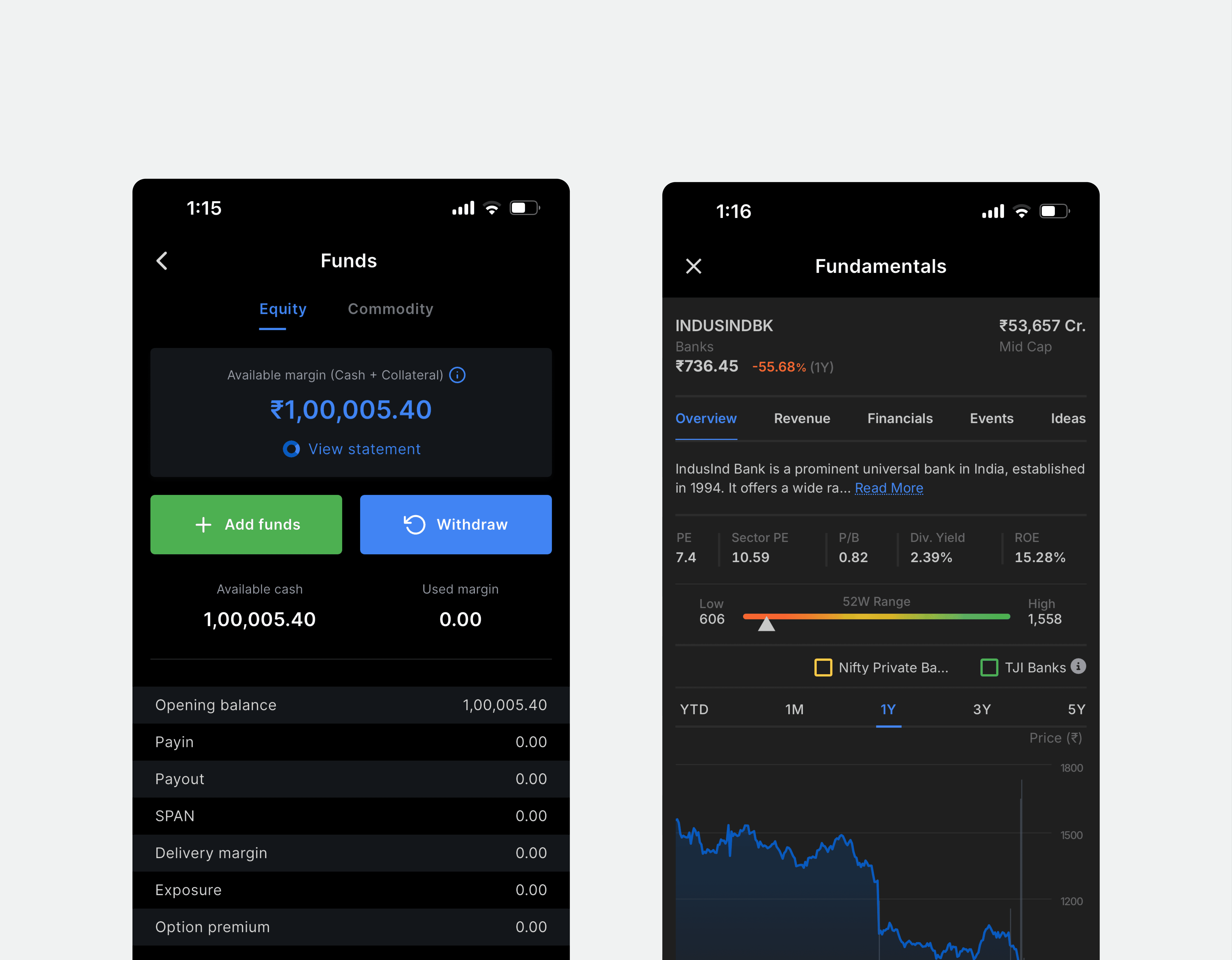 Fresh visuals, cleaner interfaces with a focus on light mode was the goal. We modernised all the interfaces keeping them clean and built to scale according to the user's trading appetite.